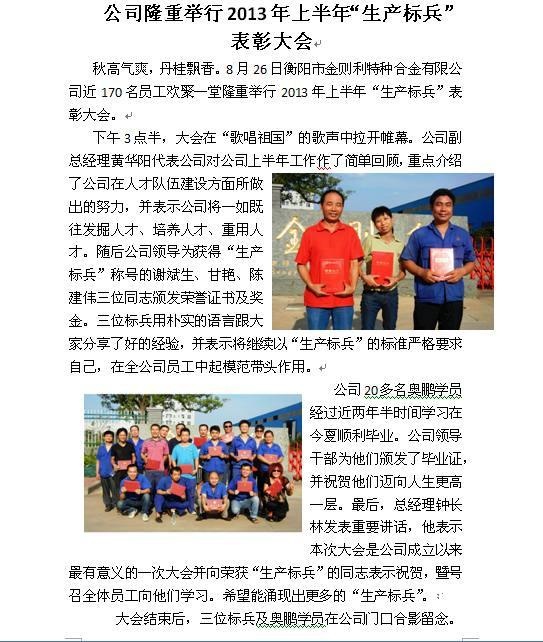 • 公司隆重舉行2013年上半年“生產(chǎn)標兵”表彰大會